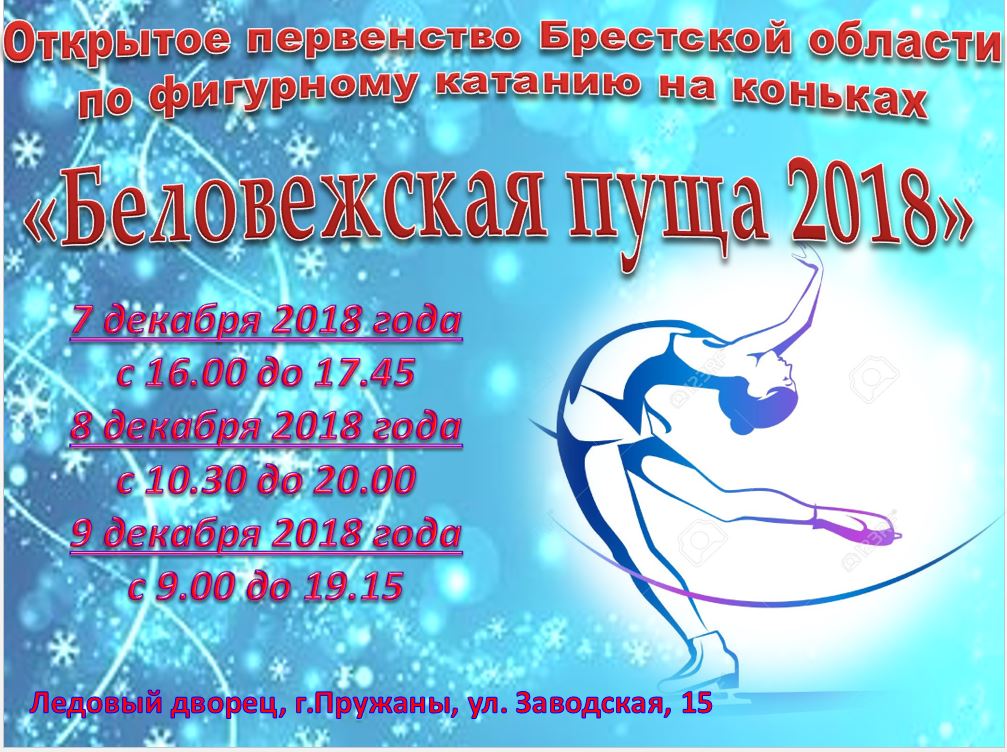 С 15 ноября 2018 года в Ледовом Дворце г.Пружаны состоится первенство Республики Беларусь по фигурному катанию "Звездочка"
